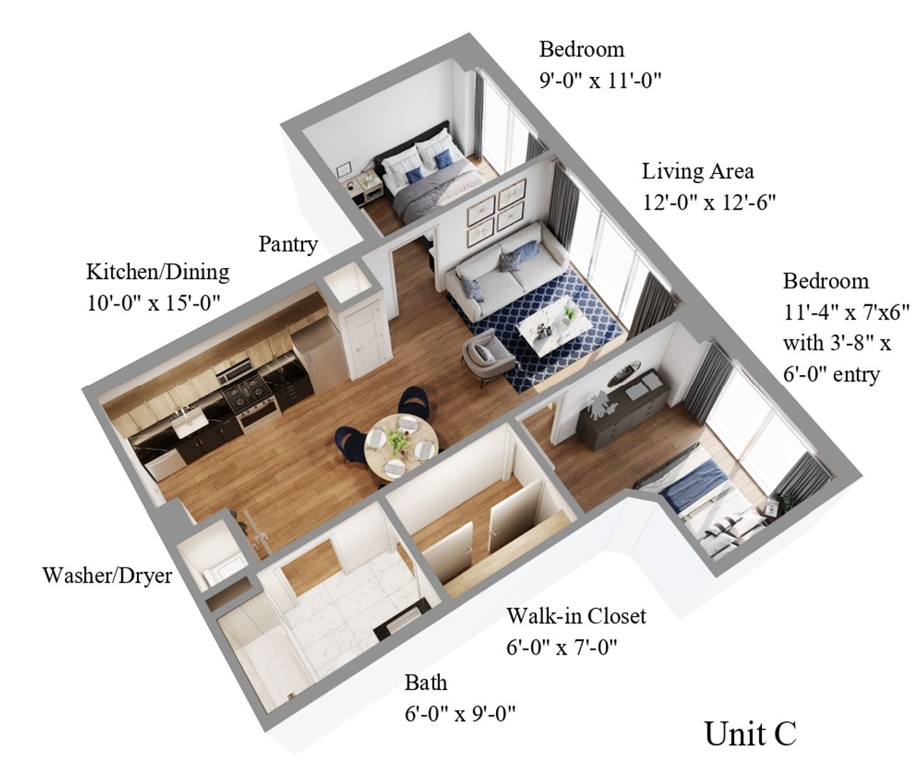 To qualify for residency, you will need a monthly household income of at least three times the rent, a credit score of 600 or higher, and must pass a background check. Any prior evictions or landlord claims may disqualify you.